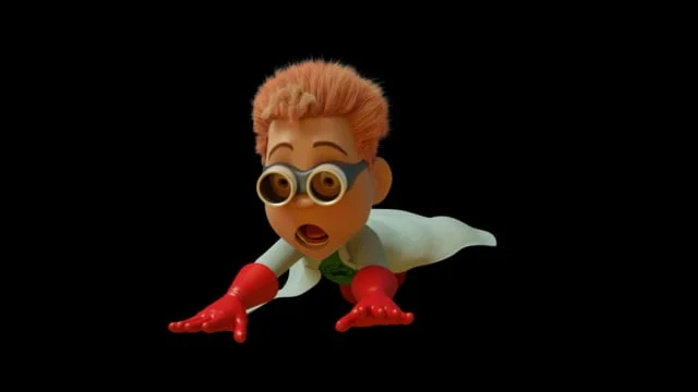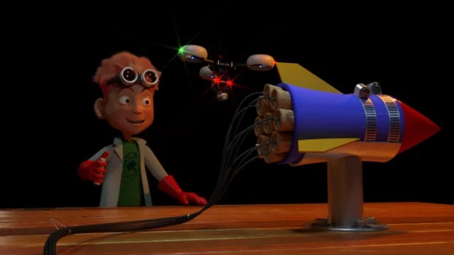 One of Atom Boy's creations was his robotic helper, the drone ARNIE, featured in the turntable animation clip. The "flying" Atom Boy clips are actually for a fantasy segment meant to be featured in the MDG Main Title sequence, though the sequence itself was never finished, due to the show not selling.